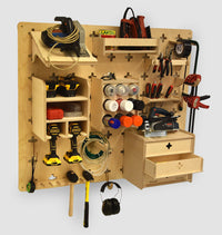 - Pratique : Permet une organisation efficace des outils et accessoires, ce qui accélère le travail et facilite l’accès à l’équipement nécessaire. La version plus petite dispose de 36 ouvertures, la plus grande de 72 pour accrocher des accessoires.