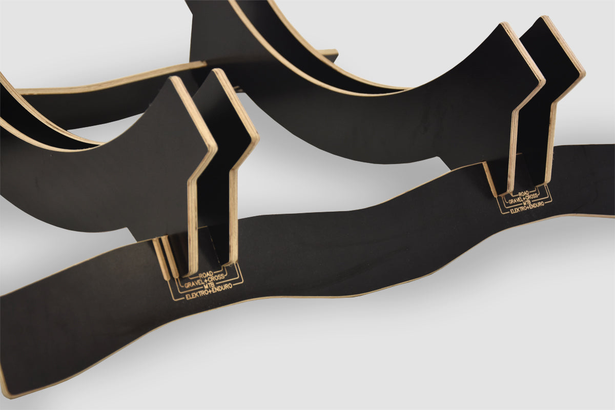 - Fabriqué chez nous : Le support pour vélo est fabriqué directement dans notre atelier à partir de contreplaqué de menuiserie de 10 mm d’épaisseur. Si vous souhaitez réaliser des stands sur mesure, n’hésitez pas à nous contacter. Sur demande, il est également possible d’y graver votre propre logo ou inscription.