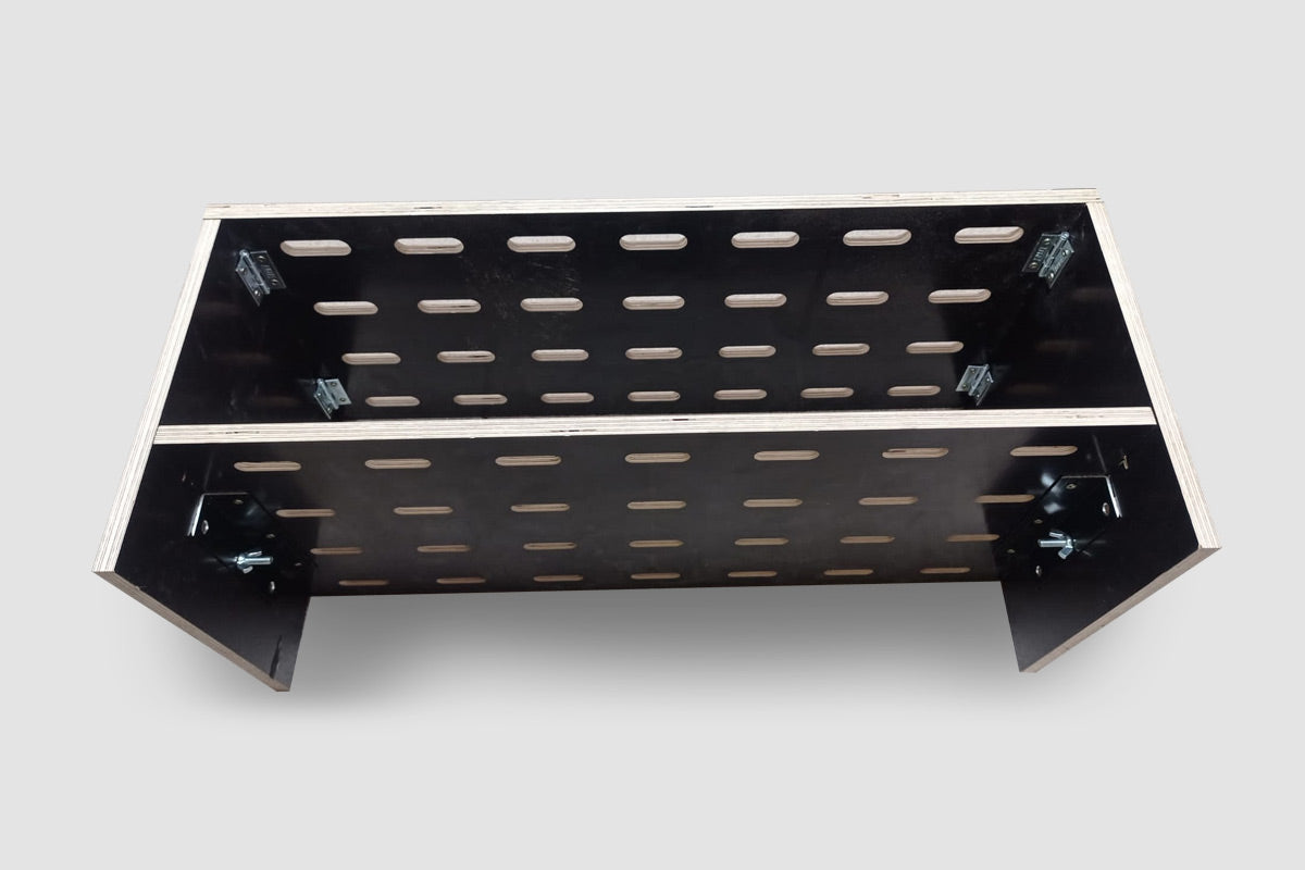 Le support est prêt et possède des trous sur les côtés afin de pouvoir être relié à d’autres supports en une rangée « sans fin ». Il est également possible de le relier à un support à skis.
